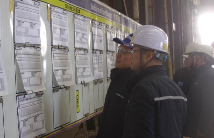 圖為:趙副社長(左二)在BT坡口區(qū)