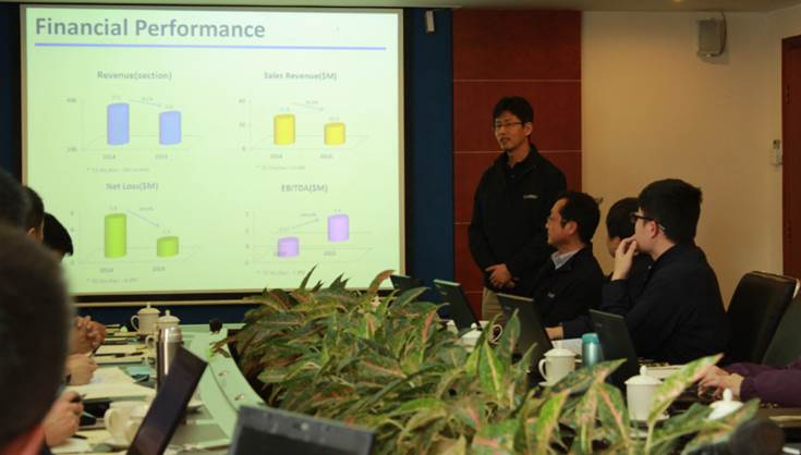 2016年1月9日至10日,2015重山風力年終會議在福建廈門召開。會議對2015年公司各個方面的工作進行了總結,同時制定了2016年的戰(zhàn)略方針和成本節(jié)約計劃。圖為:全體與會人員合影圖為:管理本部 金貞洙 本部長(右四)匯報2015年度公司財務收支情況圖為:劉容銑 總經(jīng)理 發(fā)表講話圖為:現(xiàn)場討論環(huán)節(jié)