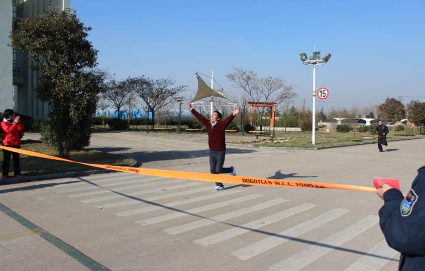 圖為:環(huán)廠區(qū)長跑 第一名QCW兼革新經(jīng)理 王衛(wèi)生 (左二) 沖過終點線瞬間